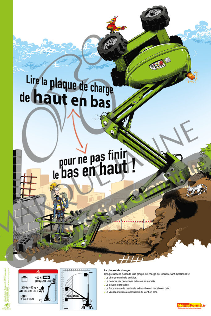 Nous avons réalisé cette affiche humoristique de prévention sur les risques liés à la conduite de nacelle pour la collection MémoForma.