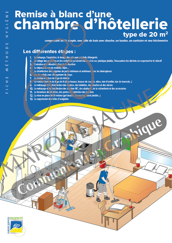 Cette fiche permet, via les illustrations, de bien analyser et de faire un rappel rapide des étapes pour la remise à blanc d’une chambre d’hôtel.